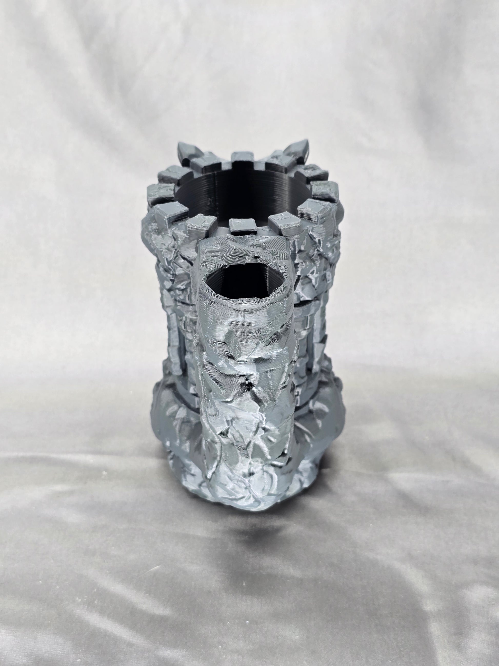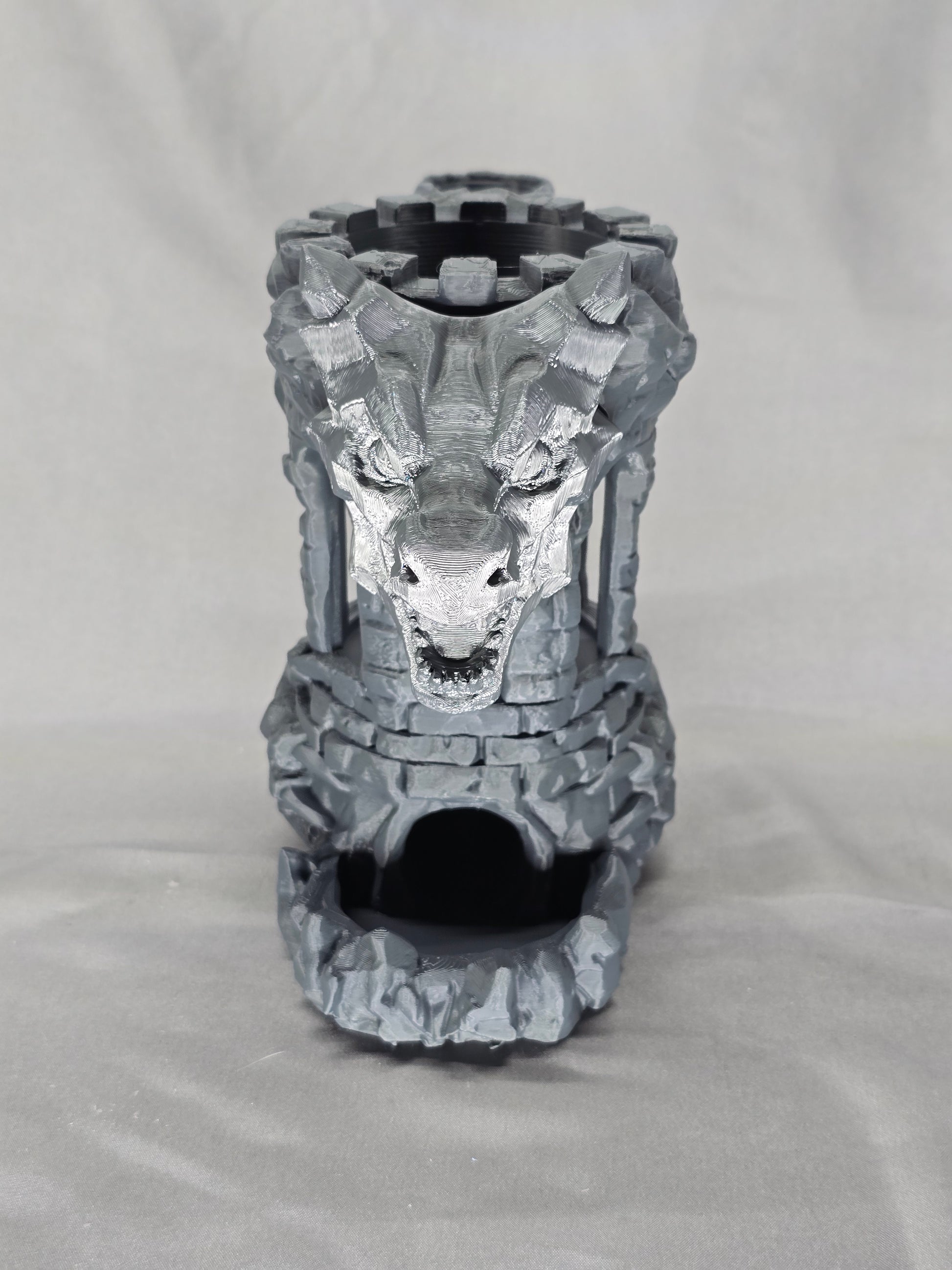 Introducing the ultimate gaming accessory - the Dragon Fortress Can Holder & Dice Tower. Keep your beverage cold and your dice rolling with this dual-functioning tool. Don't let your drink get in the way of your next victory.