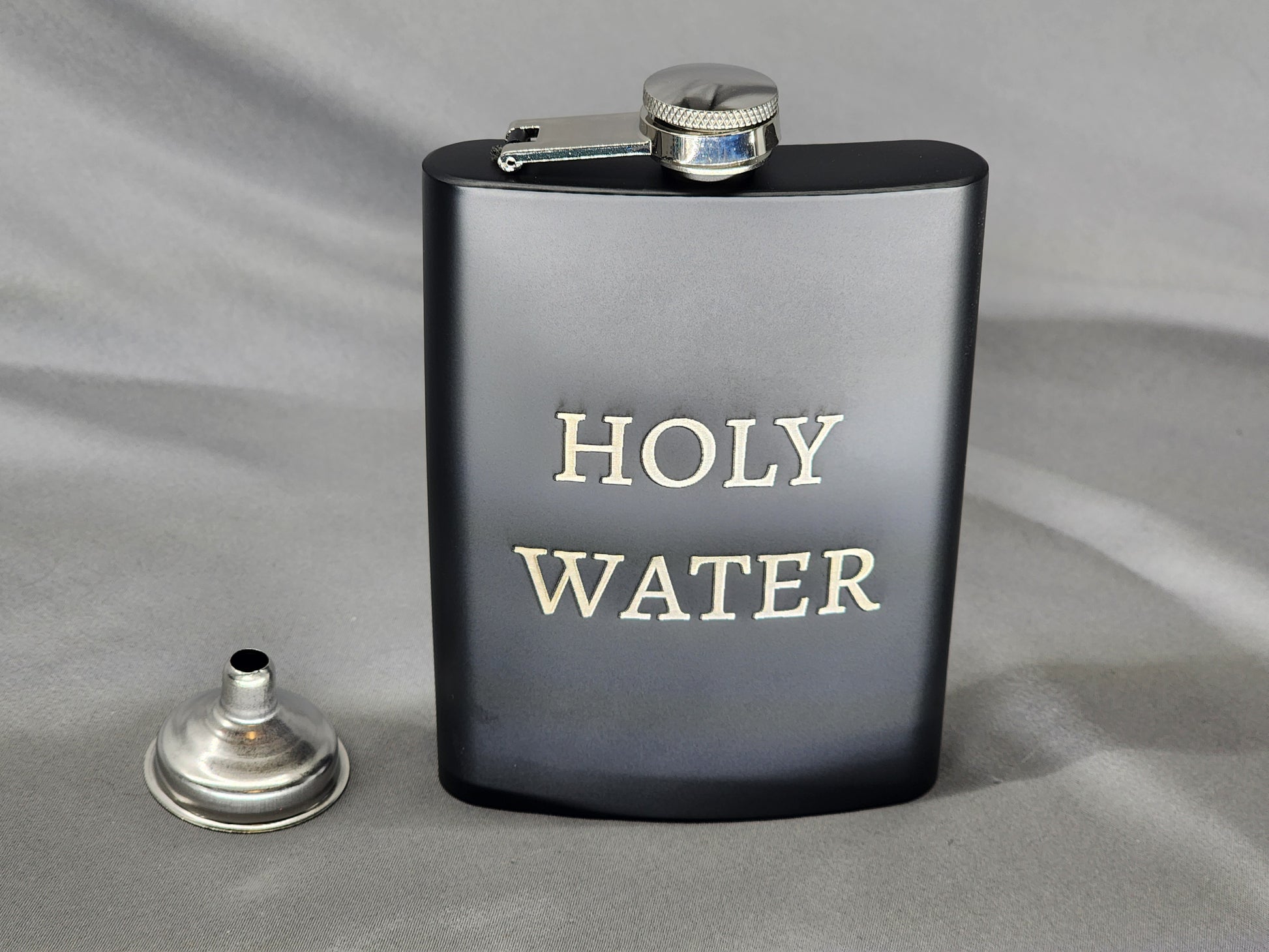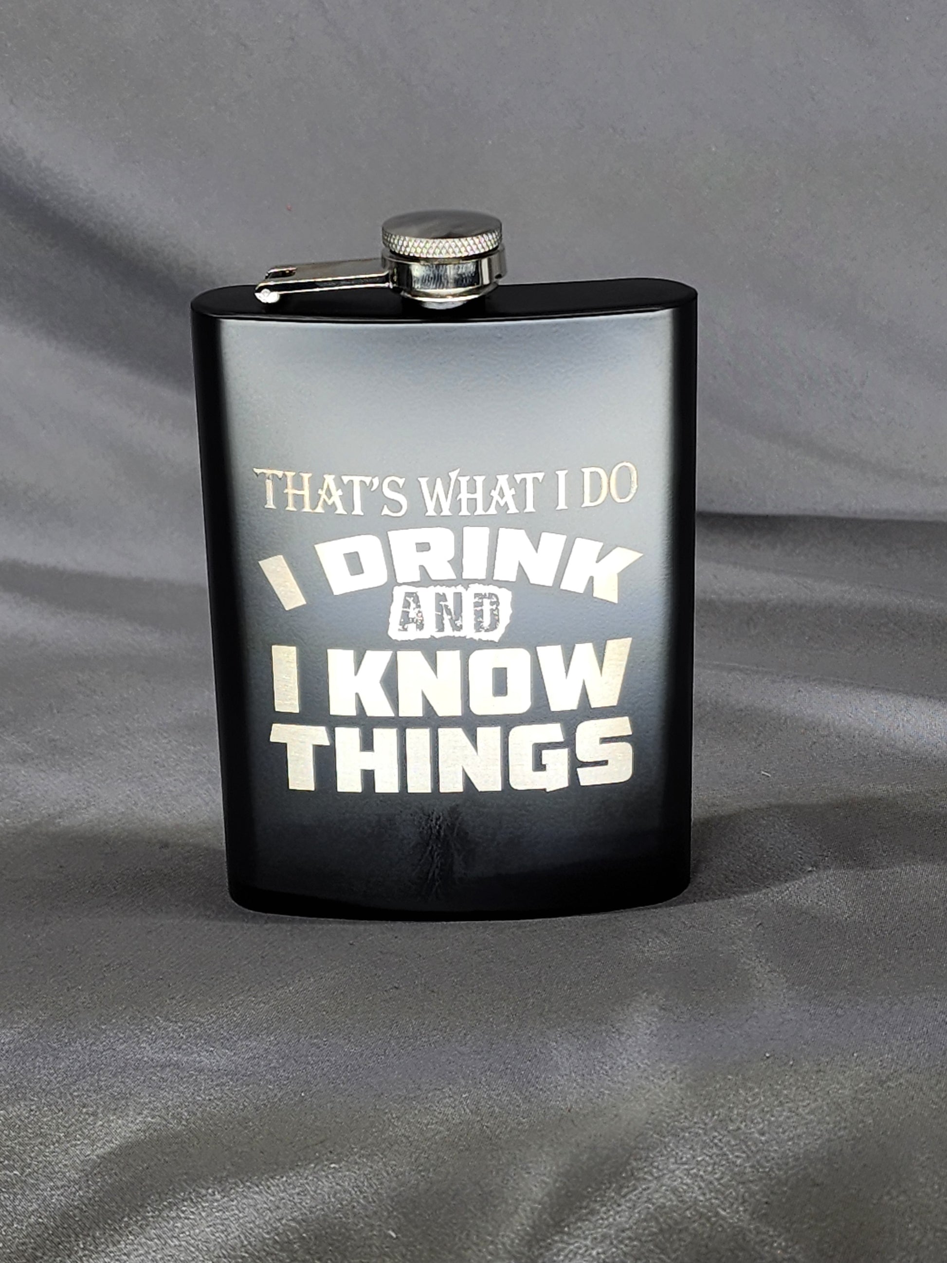 Hip Flask engraved 8oz Black with silver lid and funnel great for special occasions or gifts